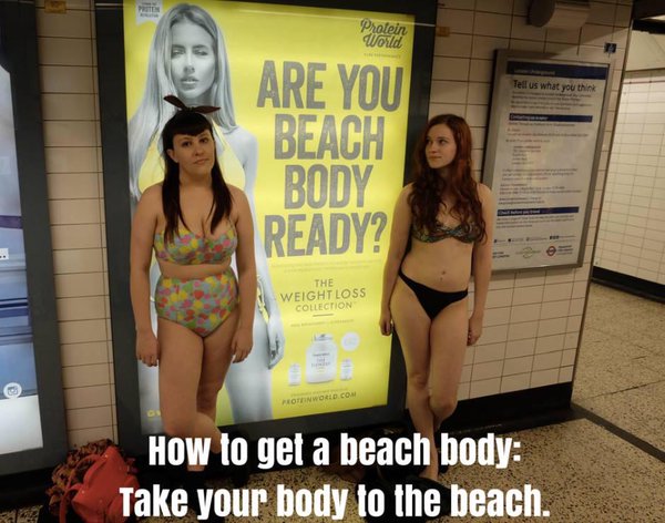 Adweek.com described Protein World as “the British Brand who gleefully hates fatties,” while Glamour suggested the campaign made them feel “bad about themselves.” They also posted pictures of other protesters who took offense, declaring that all bodies are beach-ready.