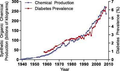 The U.S. government hands billions to the sugar industry with tax dollar subsidies. Soft drinks are found on every hospital menu. Diabetesandenvironment.org says type “2 diabetes is increasing in every country in the world,” and provides a chart showing a link between diabetes and chemical production. The EWG reports the EPA hasn’t even banned asbestos yet, and they’ve approved another 85,000 chemicals that consumers “know nothing or little about.”
