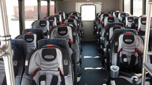 Take a look at the following photo of baby seats on a transportation bus: