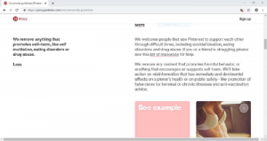 The latest copy of Pinterest’s community guidelines says that Pinterest will not tolerate anything that promotes drug abuse, suicidal ideation, or “anti-vaccine advice.” Pinterest warns they will remove anything that has “immediate and detrimental effects on a pinner’s health and public safety.” This includes removing pins that promote “false cures for terminal or chronic illnesses and anti-vaccination advice.”