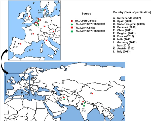In fact 50% of the patients with invasive aspergillosis due to ARAF are known to be azole naïve and the outcome of patients with azole-resistant invasive aspergillosis has been dismal, with a mortality rate of 88%. (Van der Linden JWM, Snelders E, Kampinga GA, Rijnders BJA, Mattsson E, et al. (2011) Clinical implications of azole resistance in Aspergillus fumigatus, the Netherlands, 2007–2009. Emerg Infect Dis 17: 1846–1852.)