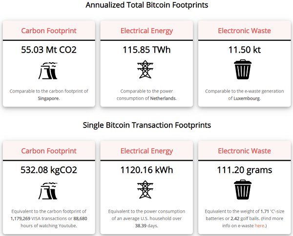 Shockingly, every single Bitcoin transaction has a “footprint” of using over 1,100 kWh of electricity, which is the amount of power that a typical U.S. household would consume in about 38 days, explains Digiconomist: