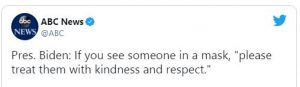 In a recent tweet, senile Joe “China” Biden wrote: “If you see someone in a mask, “please treat them with kindness and respect.” Meaning if you see anyone without a mask, do not treat them with kindness or respect. In fact, that probably means they voted for Trump, so you should then go full ‘Mad-Max’ on them and “form a crowd and push back on them,” and “let them know they are not welcome here.”