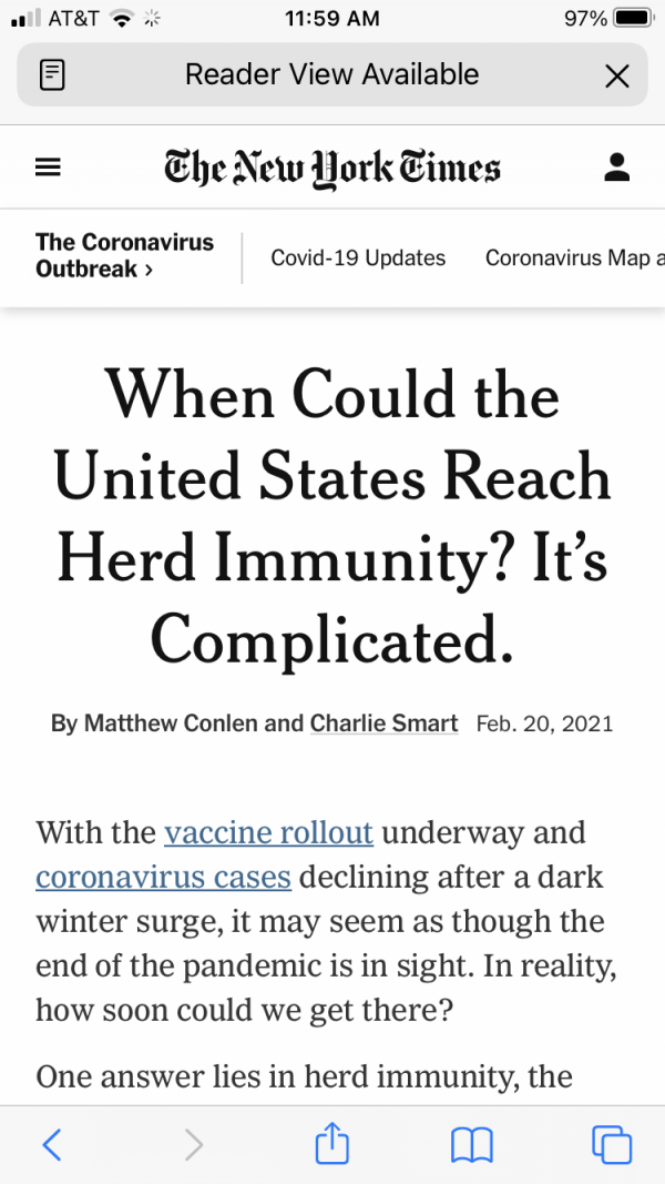 The Times piece was headlined, “When Could The United States Reach Herd Immunity? It’s Complicated.”