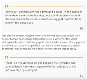Here are some of the tweets and responses to the NYT cannibal drive.