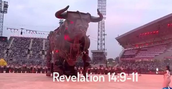 At the British Commonwealth Games opening ceremony this week (involving 72 nations), a horned bull creature representing Baal was rolled out in a hellscape arena, complete with depictions of burning lava fire pits, while dozens of satanic worshipers bowed to the demon creature as part of the public ritual. This was publicly broadcast in broad daylight, indicating that the satanists are no longer trying to hide their rituals in dark forests and secret dungeons… they’re now invoking Satan right out in the open, for an international audience.