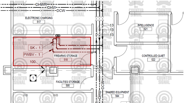 Down the hall from the proposed “Firearms Storage” rooms are several evidence rooms, interrogation suites, and adjacent recording rooms.